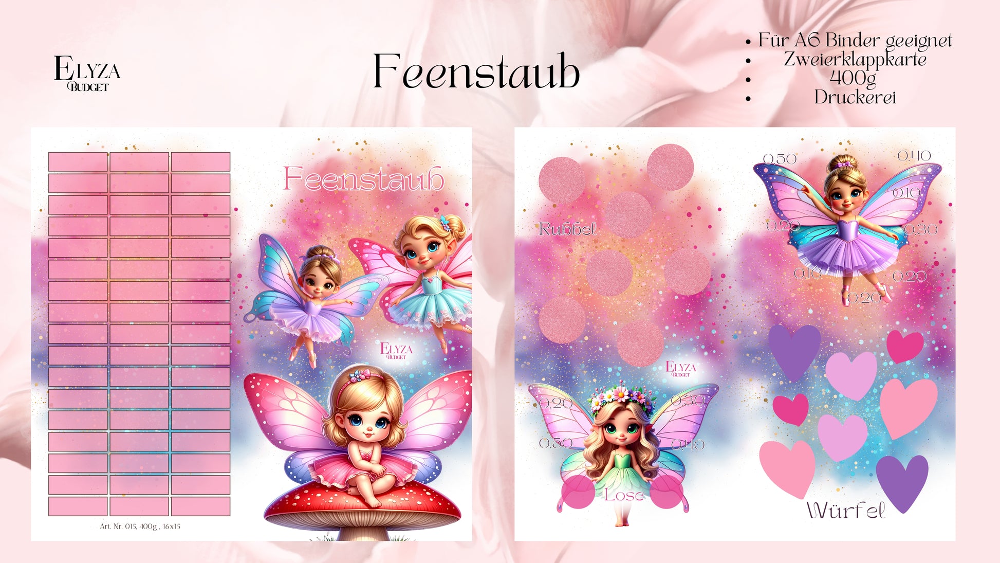Die Zweierklappkarte „Feenstaub“ bringt Magie in die Kinder-Spar-Challenge. Außen bunt und verspielt, innen Platz für kleine Sparziele – so macht Sparen Spaß und fühlt sich an wie ein glitzernder Zauber.